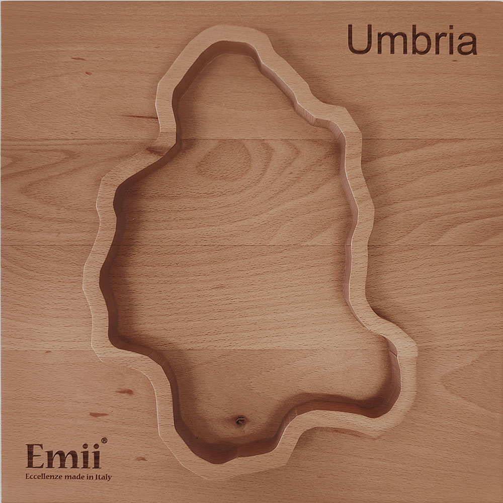 Tagliere tridimensionale a forma di Umbria adatto a servire alimenti per aperitivi, pranzi o cene o come oggetto di design e idea regalo.